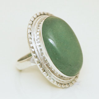 Bague finement gravée en argent de l'artisanat indien montée d'une pierre fine d'Aventurine.