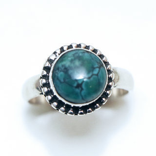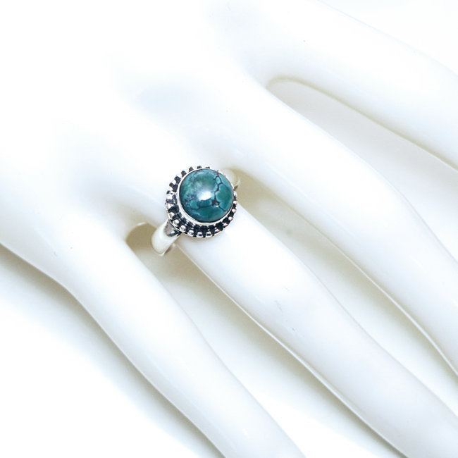 Bague en argent munie d'une pierre de Turquoise naturelle réalisée par des artisans en Inde.