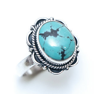Bague filigranes ovale argent 925 et Turquoise naturelle - Inde 092
