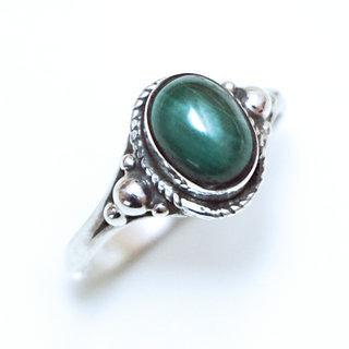 Bague en argent et pierre fine de Malachite d'origine indienne.