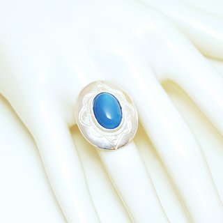 Grande bague réalisée artisanalement en argent massif 925 et pierre fine ovale d'Agate bleue.