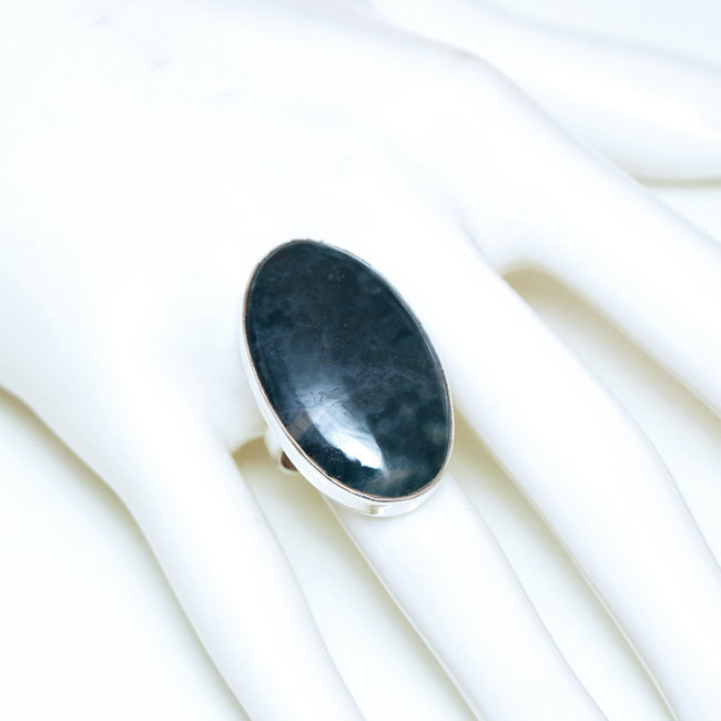 Jolie bague indienne en argent et pierre fine d'Agate mousse verte.