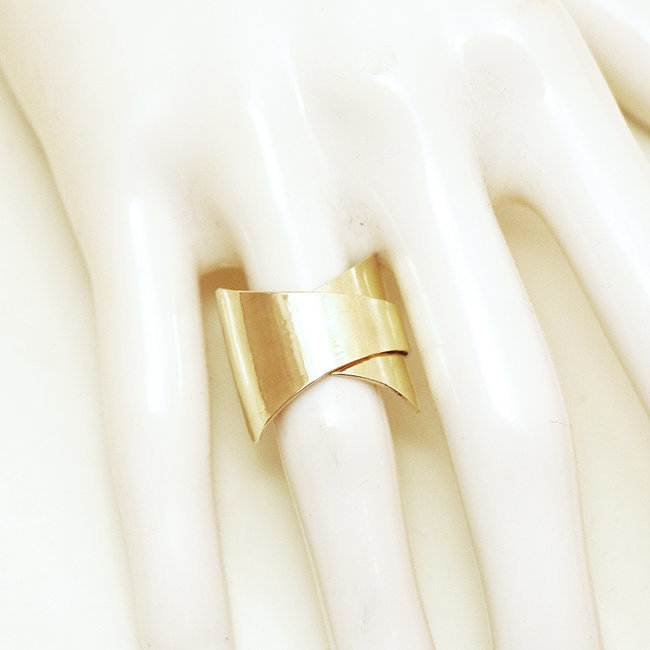 Bague Bandeau Noeud Peul-Fulani réglable bronze doré 2 cm - Mali 064S