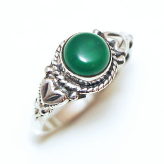 Petite bague en argent et pierre fine d'Agate verte réalisée artisanalement.