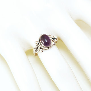 Petite bague indienne en argent sertie d'une pierre fine d'Améthyste.