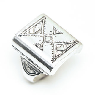 Chevalière en argent massif 925 aux fines gravures réalisées par des artisans du Niger.