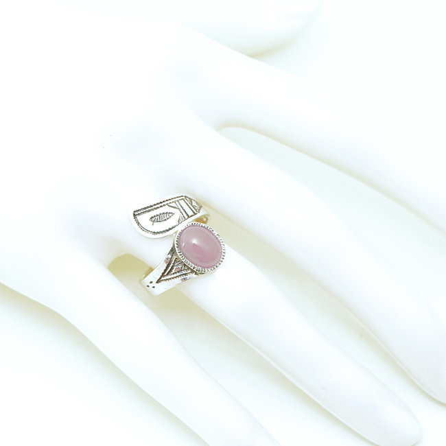 Elégante bague ajustable, réalisée en argent et sertie d'une pierre fine de Quartz rose.
