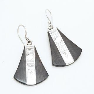 Boucles d'oreilles pendantes gravées en argent gravées artisanalement par des touaregs et bois d'ébène.