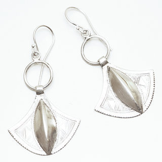 Elegantes boucles d'oreilles gravées en argent massif 925 fabriquées artisanalement par des touaregs.