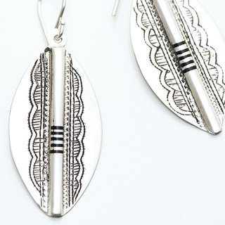 Elégantes boucles d'oreilles gravées en argent avec de fines lignes de poudre d'ébène.