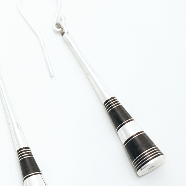 Boucles d'oreilles pilons en argent et poudre débène.