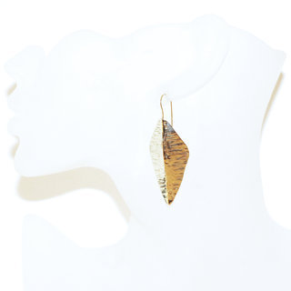 Boucles d'oreilles feuilles losanges martelées en bronze doré - Mali 090