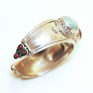 Bracelet de l'artisanat népalais en argent,Turquoise et Corail travaillé finement grâce à ses filigranes.