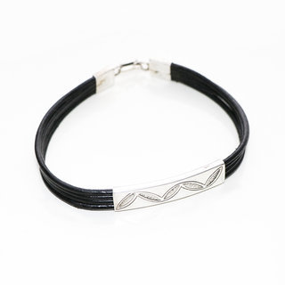 Bracelet réalisé par des artisans du Niger en argent avec cordon en cuir noir. Fermoir en argent massif 925.