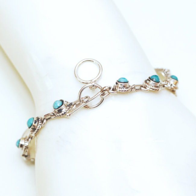 Bracelet népalais en argent et Turquoise véritable.