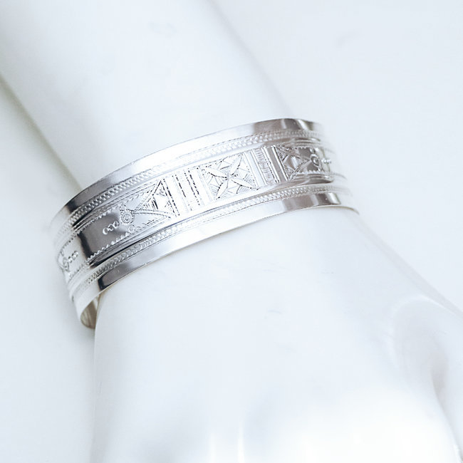 Bijoux ethniques Bracelet touareg berbère argent 925 massif femme manchette large personnalisée églable ajustable ouvert gravé gravure artisanal croix - Niger 154 c