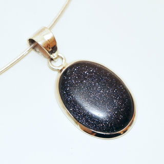 Pendentif conçu par des artisans indiens en argent et monté d'une pierre fine de Pierre de Soleil bleue.