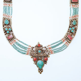 Collier provenant de l'artisanat népalais travaillé finement grâce à sa répartition de pierres et ses gravures.